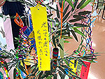 7月6日七夕祭りを開催しました。お昼には七夕メニューでちらし寿司、天の川そうめん、天ぷら盛合せをいただき、13時から一人一人短冊に願いを書き、笹に飾りつけ、くず饅頭をいただき、賑やかな七夕祭りを楽しみました。