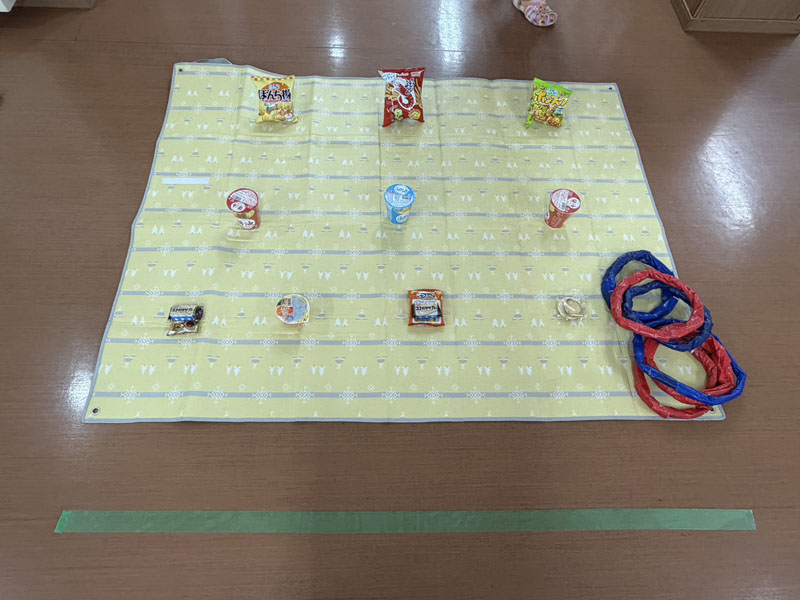 お昼ご飯は屋台風に、普段とは違った感じで楽しんでいただき、その後スーパーボールすくい、輪投げを楽しみ、特に輪投げは、景品のお菓子を狙い、なかなか気合の入った様子で、楽しい一日を過ごしていただけたかと思います。